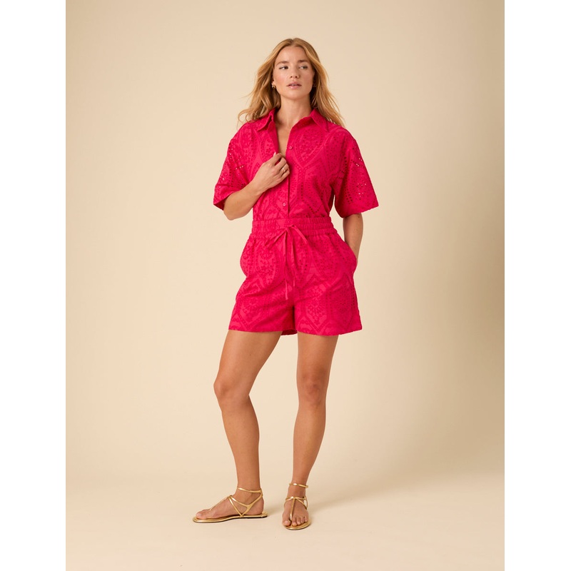 Power pink. Coming in a fun, statement pink shade, our shorts feature delicate cutwork detailing in an easy, pull-on silhouette. Wear with our matching top for the full look. Elasticated waist for comfort Size tip: we recommend your usual size