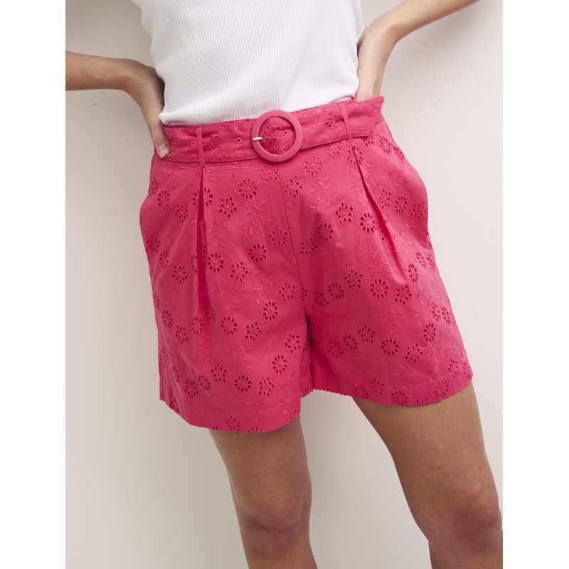 Show off those legs. In hot pink with floral stitching, these shorts have us dreaming of holidays yet to come. The belted high-rise waistband falls to a relaxed fit, emphasised by soft pleats. Wear yours with a square neck top this summer.Relaxed cut that