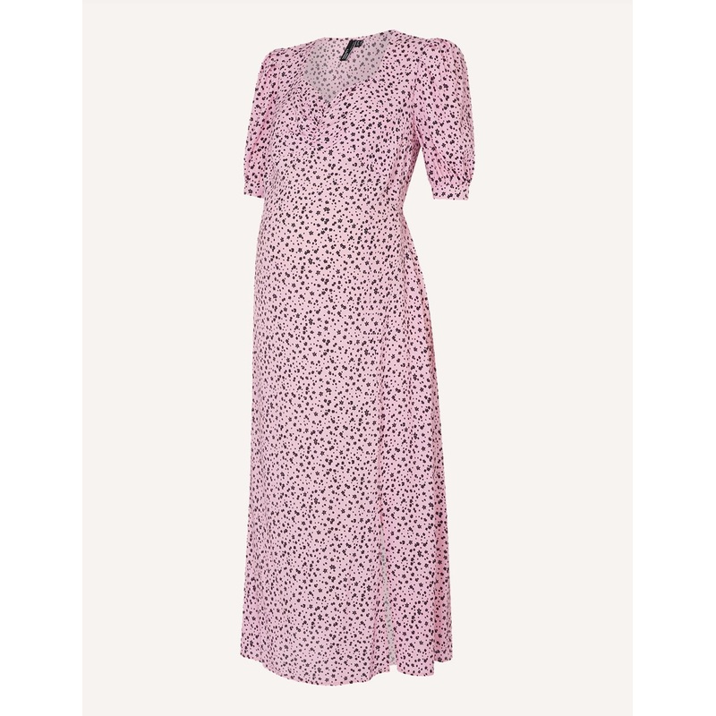 Love floral prints? Our pink Rosie maternity dress is the one for you. Her bump-friendly midi length is elevated by a vintage-inspired sweetheart neckline, puff sleeves and a subtle leg slit for movement. A concealed zip fastening runs up the side, so you can slip it on and off with ease. Complete your look with trainers.