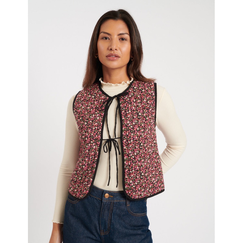 Dress in ditsy florals this autumn; this quilted waistcoat is perfect for the change in weather. Layer up with a go-to top for that cosy look. Style yours with denim and Mary-Jane shoes.Round neckString tie detailingLinedDesigned for a relaxed fit