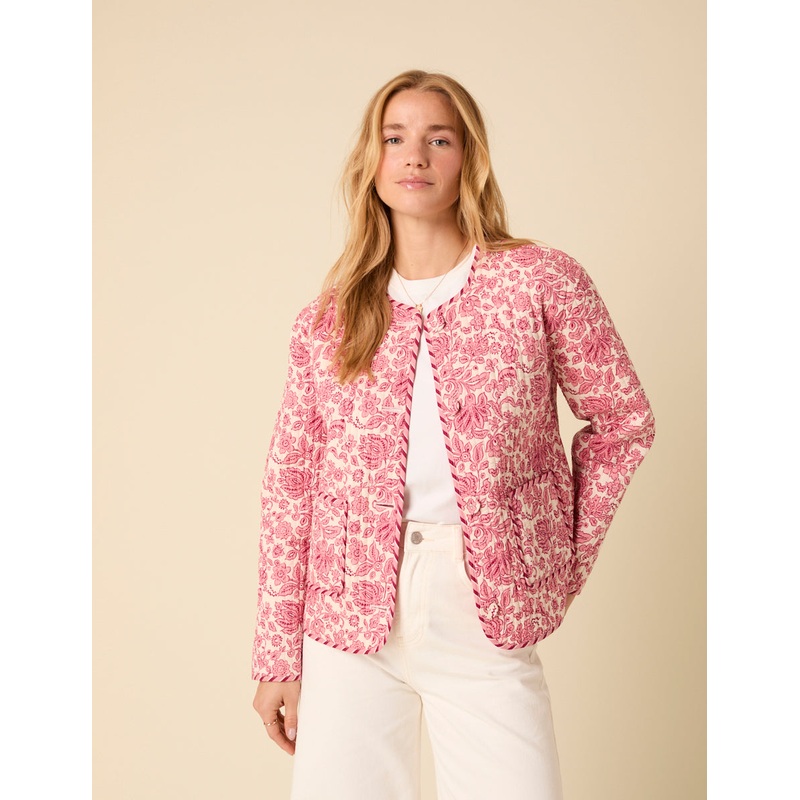 One jacket, two looks. This reversible floral print padded jacket is the perfect transitional piece. We love the black trims and statement patch pockets that you can fill with your everyday essentials. Wear yours with a classic white tee and denim jeans.