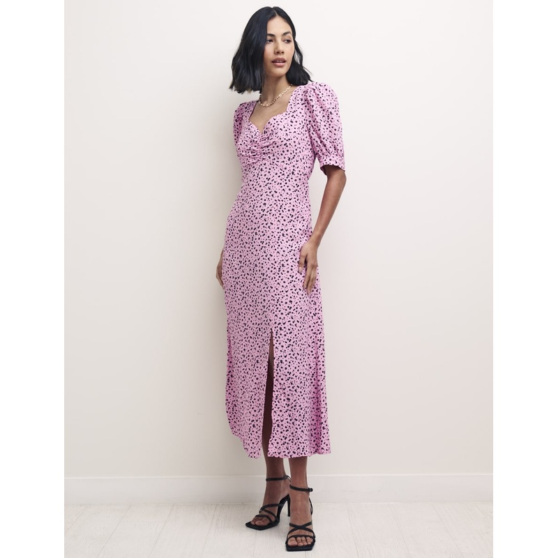 Is there such a thing as too many florals? We dont think so. Our vintage-inspired Rosie dress takes style notes from the past to create something so-now. We love her sweetheart neckline detailed with ruching, lightly puffed sleeves and a subtle slit. Finis