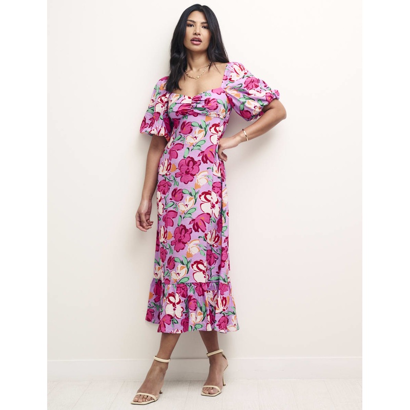 Were in love with Darcie. A series of brushstroke petals come together in a pink peony print. A ruched sweetheart neckline, scoop back and flouncy tiered hem adds to the artful feel of this midaxi. Add her to basket shes worth making plans for.