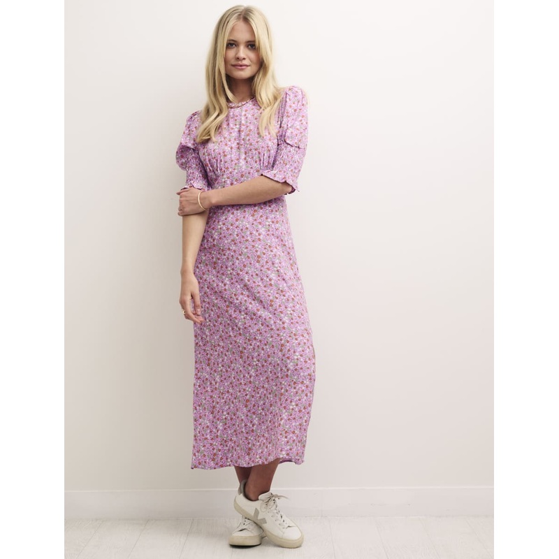Expect compliments in our Luna midi. In a vintage-inspired shape with shirred cuffs, subtle frills and a leg-lengthening slit, shes low-key but elevated in an instant. So much more than just a tea dress, Luna does dinner reservations too and we love her in this pink heart print. Just slip into trainers.