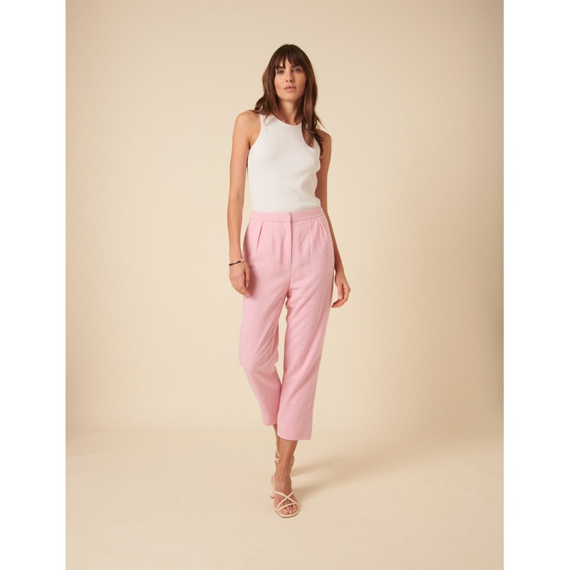A polished yet playful staple. Coming in a soft pink shade, these tapered trousers feature a high-waisted fit and a flattering cropped length. Were wearing ours with a white top for a classic look.High waistedTapered legSize tip: we recommend your usual si