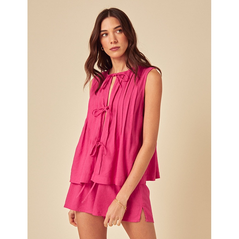 Simple, but with a twist. In a statement pink shade, our top features a sleeveless fit, and on-trend tie details. Style with everything you already own.