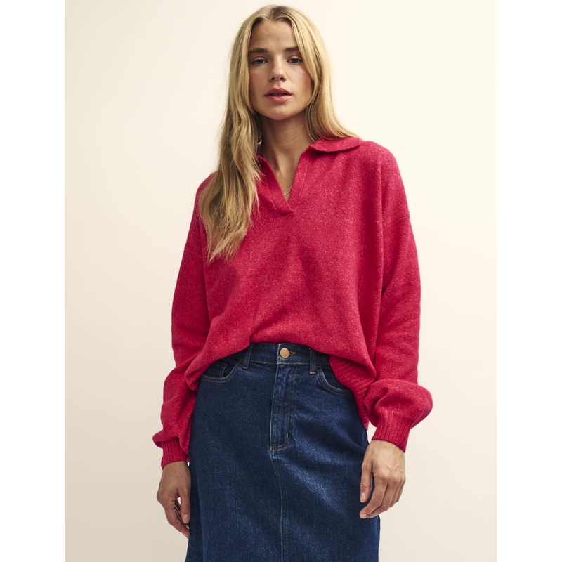 Is it autumn yet? In a hot pink shade, this fluffy knit features long sleeves and ribbed cuffs. Tuck yours into a denim column skirt.CollarLong sleevesRibbed cuffs and hemDesigned for an oversized fit, if you are looking for a closer cut please size down