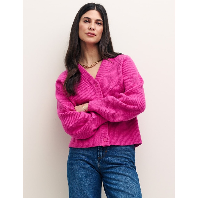 Weve got a soft spot for this cardigan. Made from fluffy pink fabric, it features a button-through front, ribbed detailing and a deep v-neckline thats perfect for layering or styling solo. Wear yours with everything you already own.