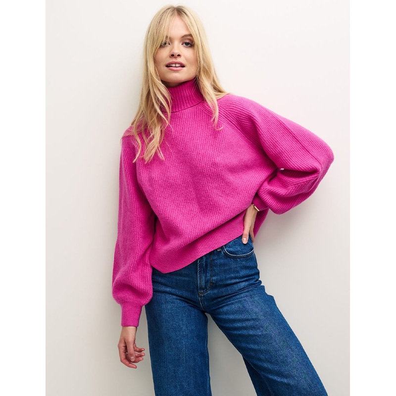 Make a cosy update to your current jumper collection with this pink layer. Featuring a funnel neck, voluminous sleeves and ribbed cuffs, the comfortable piece makes for the perfect throw-on over midi dresses or wear with denim and boots for a casual alternative.