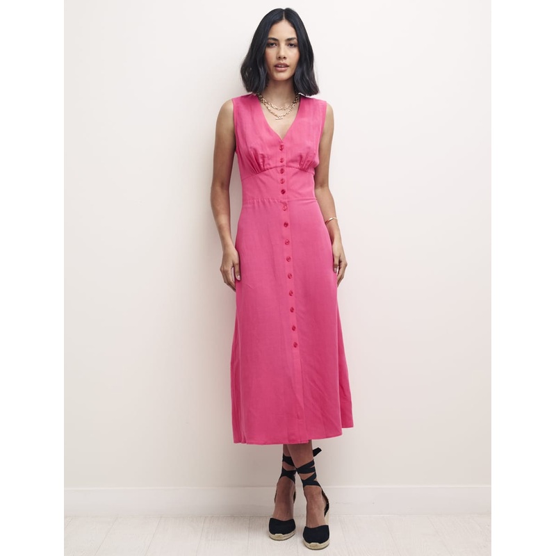 Make a statement in our Sandra midi dress. The hot pink shade is so-now. Style yours with a basket bag and a camera.V-neckButton frontPanelled waist designed to flatterShirred back for comfort
