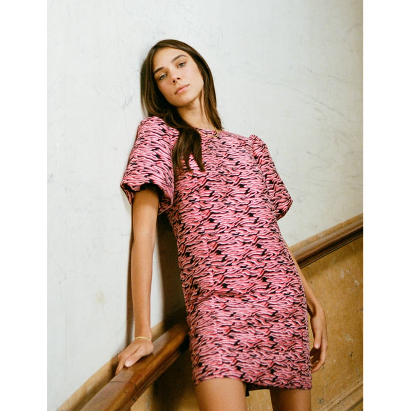 Be the first to review “Pink Tiger Jacquard Davina Mini Shift Dress”