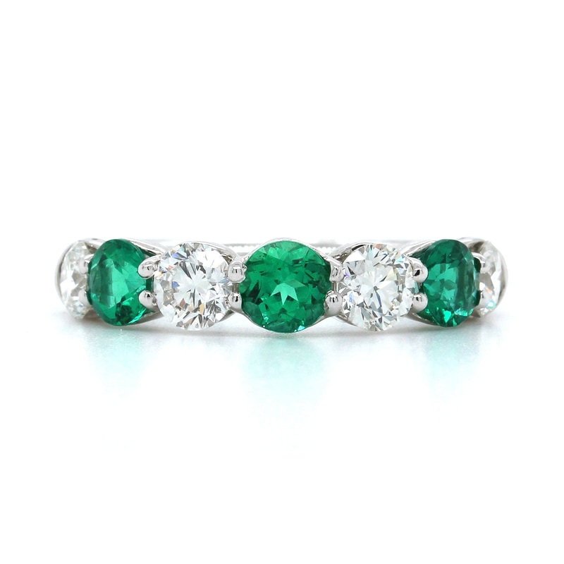 S993202678Platinum Emerald and Diamond 7 Stone Band