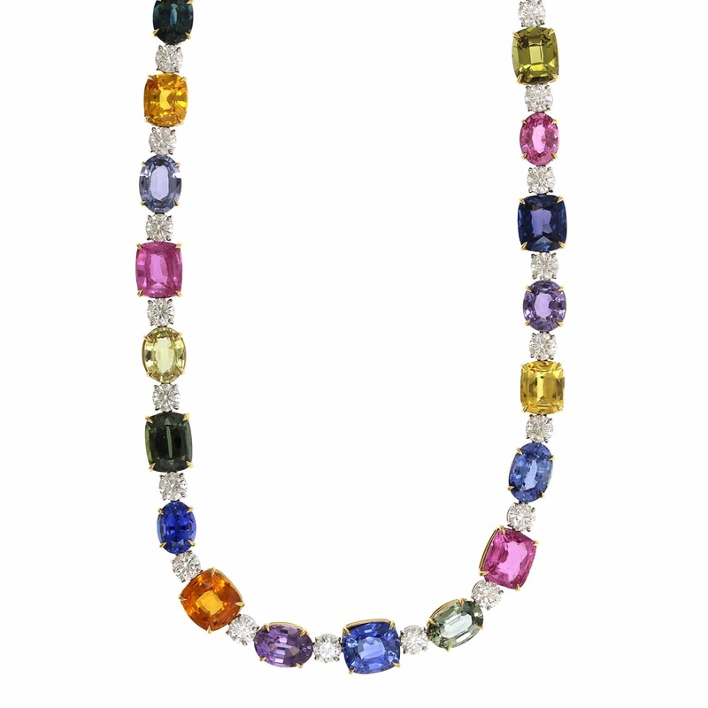 Platinum Multi Sapphire and Diamond Necklace