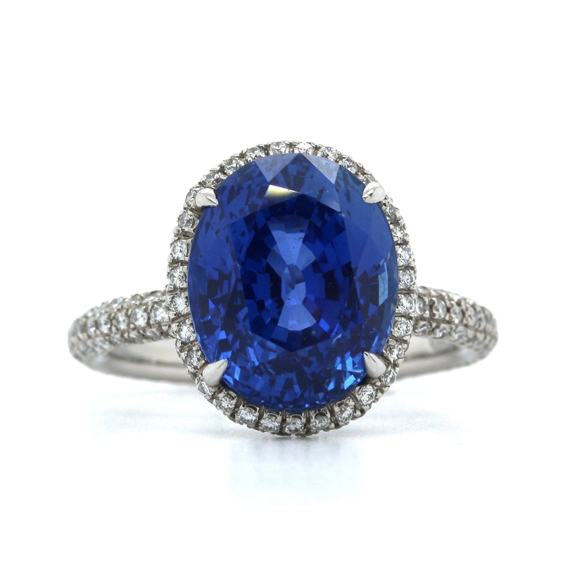 S993200398Platinum Oval Blue Sapphire and Diamond Ring