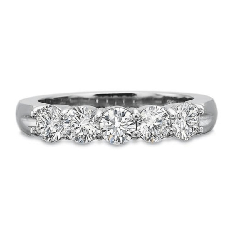 Platinum prong set 5 stone diamond band from Grand Aire collection.