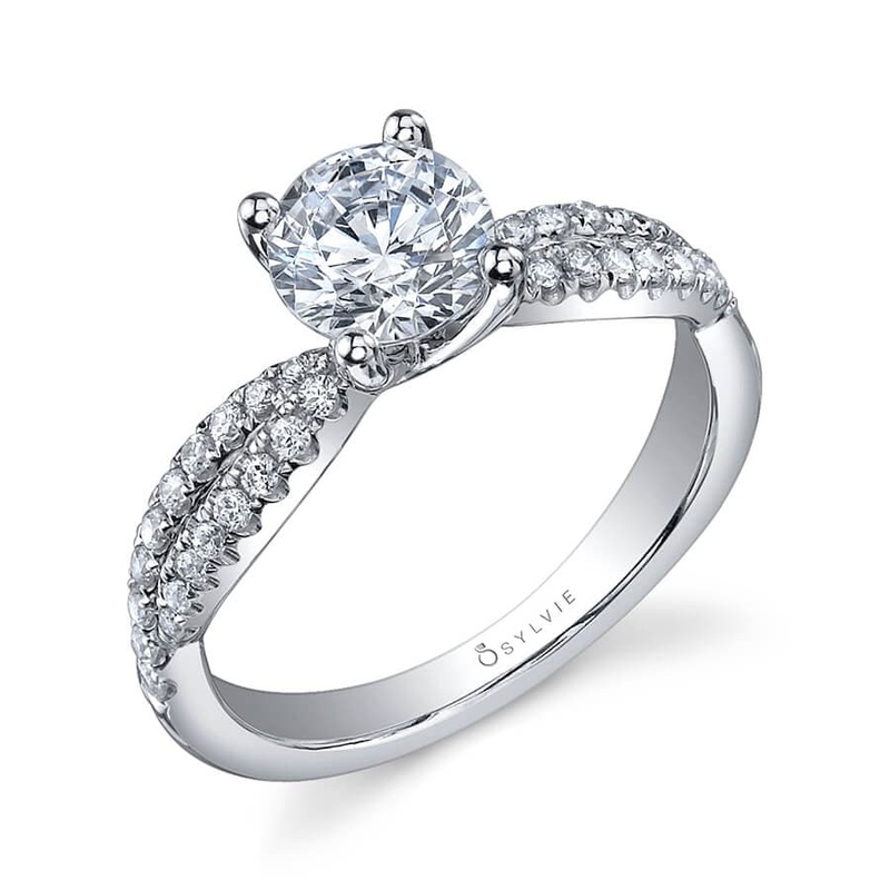 Platinum split shank with .51ctw diamonds for a 1.25 round center.Center stone sold separately. PLEASE NOTE: This can be ordered in different metal types, size and can accommodate a different center stone size and shape (prices may vary). Our stock rings a