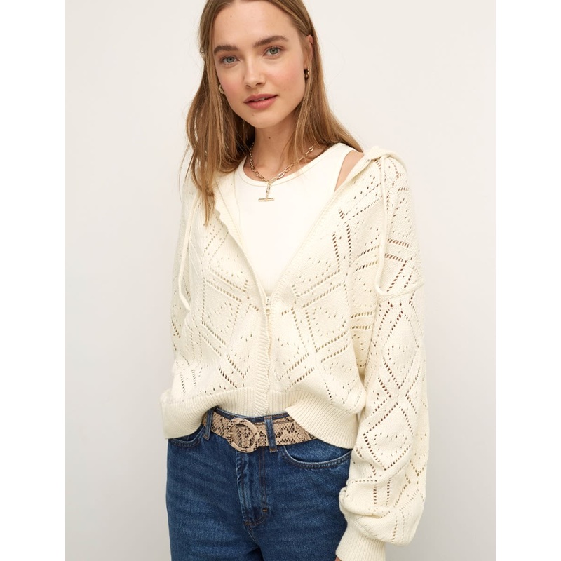 A sartorial piece that’s perfect for every season, this pointelle hoodie ticks all boxes when it comes to laid-back style. It takes on a relaxed fit with long sleeves and a hood for balance. Its a cosy choice for off-duty days, while the scallop trim aside the zip fastening gives it a truly feminine edge.