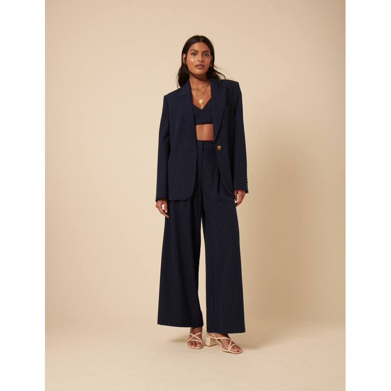 Pinstripe perfection. High-waisted with a super wide-leg cut, we love the soft pleats to the front and sides. Style with our matching bralette and trousers for the full look.
