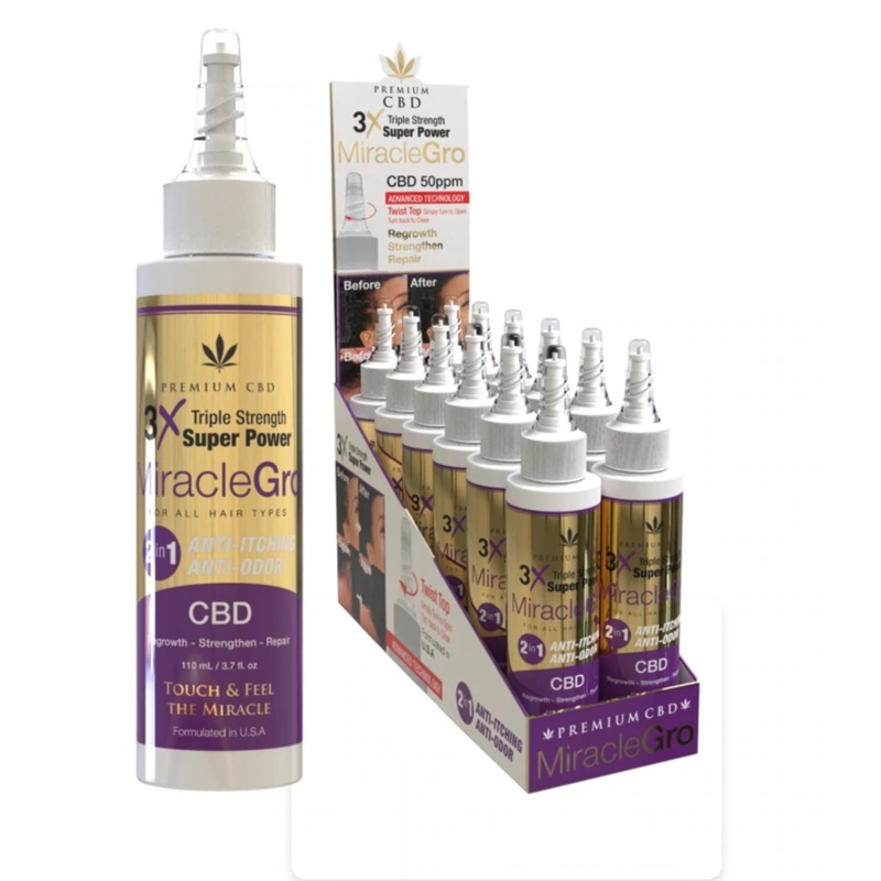 Premium CBD 3x Miracle Gro 110mLis a powerful CBD based hair growth product. CBD oil is filled with fatty acids like Omega-3, Omega-6, and Omega-9. These fatty acids are proven to lock in moisture and easily absorb into the scalp.2-1 ANTIITCHESS ANTI ODOR