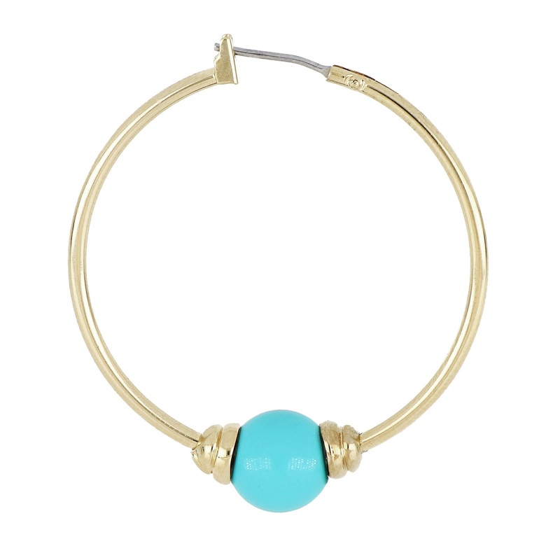 From theProla Collection, large gold hoops with a single turquoise bead centered at the bottom.