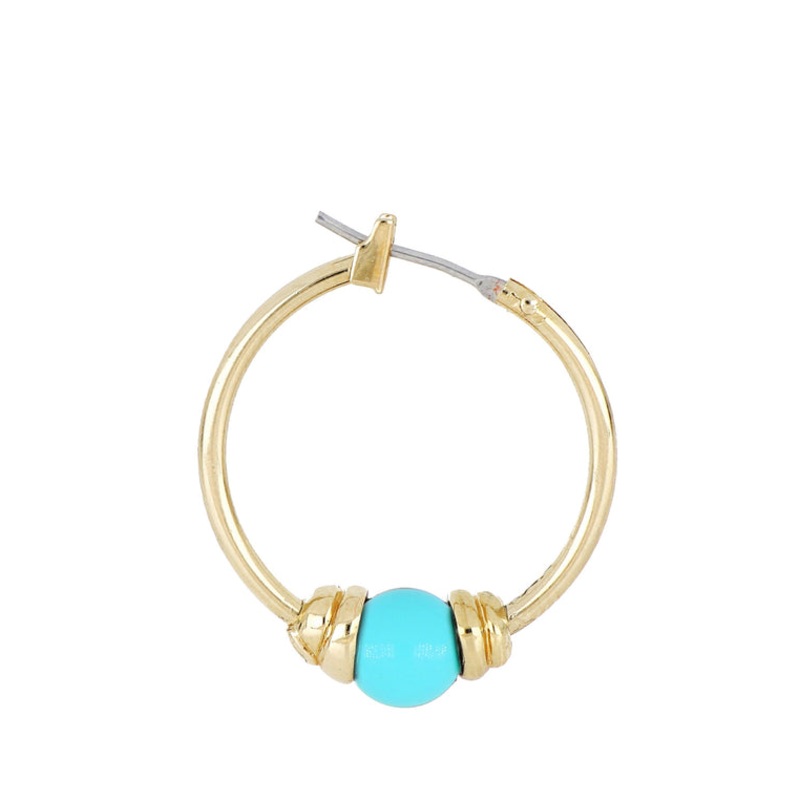 From the Prola Collection, small gold hoops with a single turquoise bead centered at the bottom.