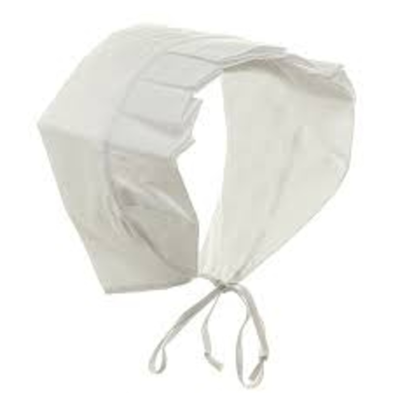 Traditional white cotton Puritanor Pilgrim Bonnet.