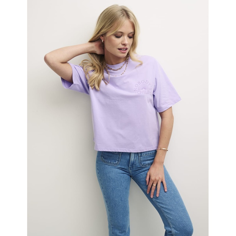 Wear a smile.. We love the light lavender shade and relaxed boxy fit. Style yours with jeans.Round neckShort sleevesRelaxed fit