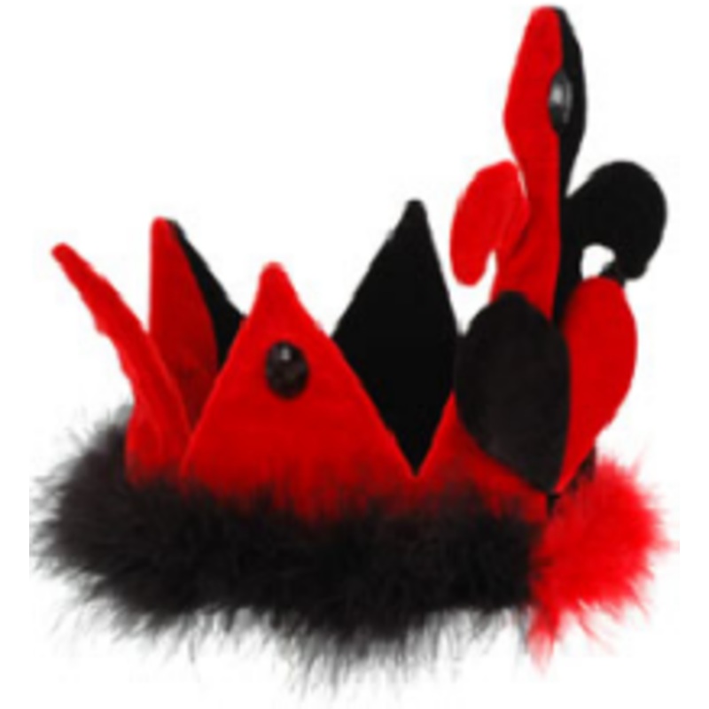 Licensed Alice in Wonderland Wear this crown & warn your party goers to act properly or you may declare"Off with their heads!"Velvet crown w/marabou & acrylic gem accentsColor: Red/Black (shown)Size: One Size adjustable w/velcro size adjuster. Fits adults