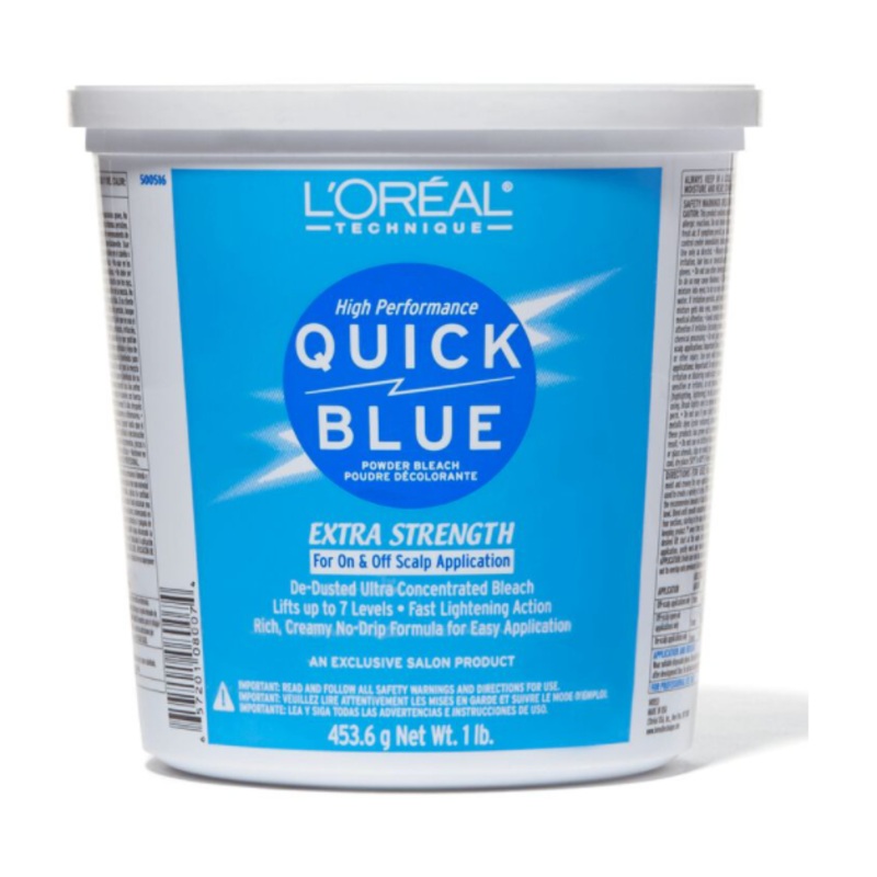 L'Oreal Quick Blue High-Performance Powder Lightener is a new dust-free formula that provides brighter and superior lightening results faster. Its concentrated formula is smoother with a non-drip consistency that delivers more precise, controlled applicati