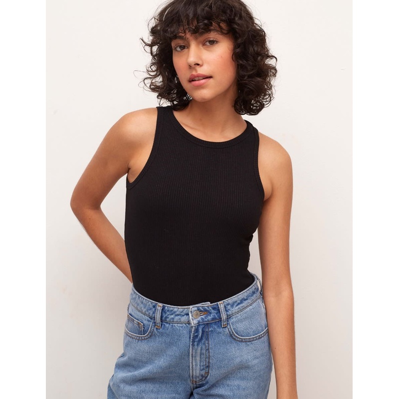 A cute take on a 90s classic, this bodysuit is a true wardrobe staple. Featuring a sporty racer neckline and a narrow ribbed design. Wear with your favourite pair of jeans on off-duty days.