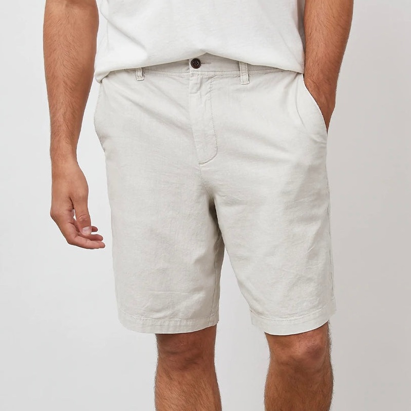 RM-230-910A-1063 These super comfortable, lightweight linen blend shorts feature a stretch waist with belt loops, a button and fly closure, and sustainable corozo buttons.