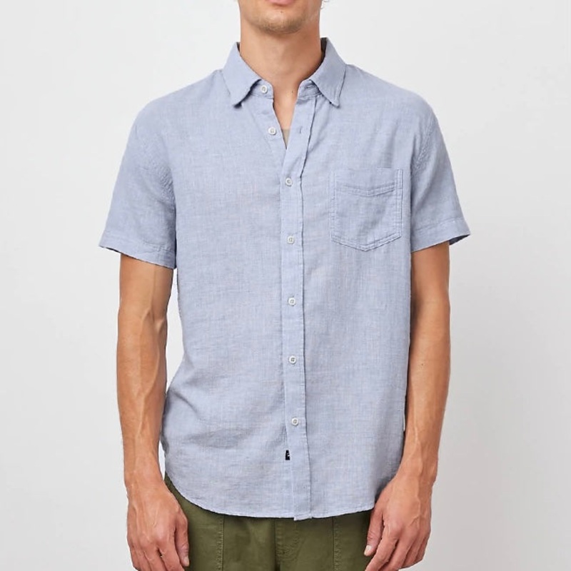 Rails Fairfax Shirt in Blue MelangeRM-128-919A-4109 Button Up Shirt.100% Cotton.This super soft, laidback shirt is perfect for any occasion from work to weekend. Made from lightweight cotton, this short sleeve button-down shirt features a single patch pock