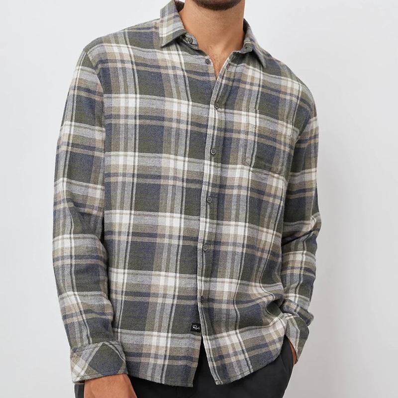 Rails Mens Lennox Shirt.Our best selling Lennox style features a luxe melange yarn fabrication that is brushed on both sides for extra softness and comfort. Made from a soft cotton rayon blend, this long sleeve comes in a relaxed fit and features a single chest pocket.