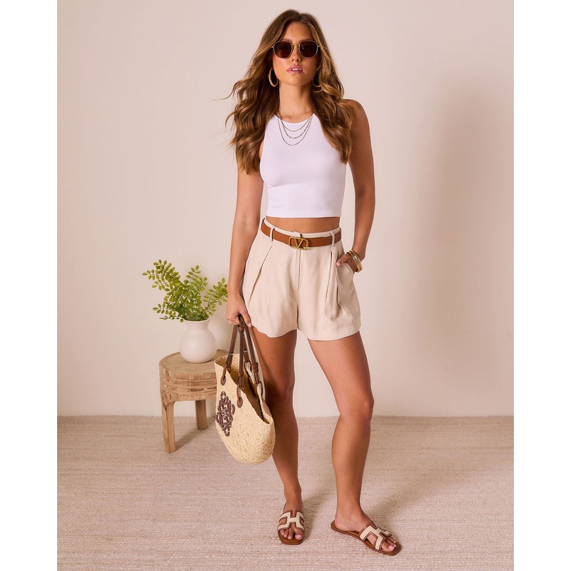 The Rayelen Pleated Linen Shorts are here to rewrite your summer uniform, think tailored meets totally effortless. With airy pleated linen that moves like a dream and side slant pockets made for hands, snacks, or spontaneous photoshoots, these shorts were made for the girl who wants to look pulled together without trying too hard. The relaxed fit gives a nod to vintage Americana charm, while the elevated shape keeps things city-sleek.