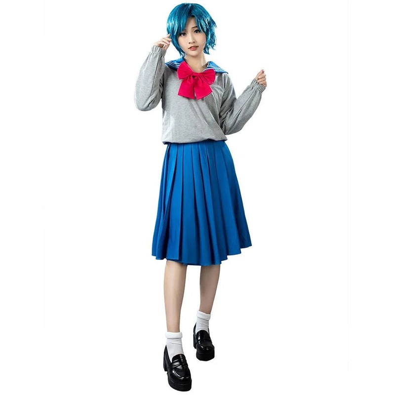 DescriptionSize ChartNote: Pls check item size chart and delivery date before ordering.Includes Tops Pleated SkirtBow tie Sweater Material:Uniform, knitSailor Moon/ Sailor Mercury/ Ami Mizuno School Uniform/ Cosplay Costumes / Sailor Dress/ Sailor Suit/ Ha