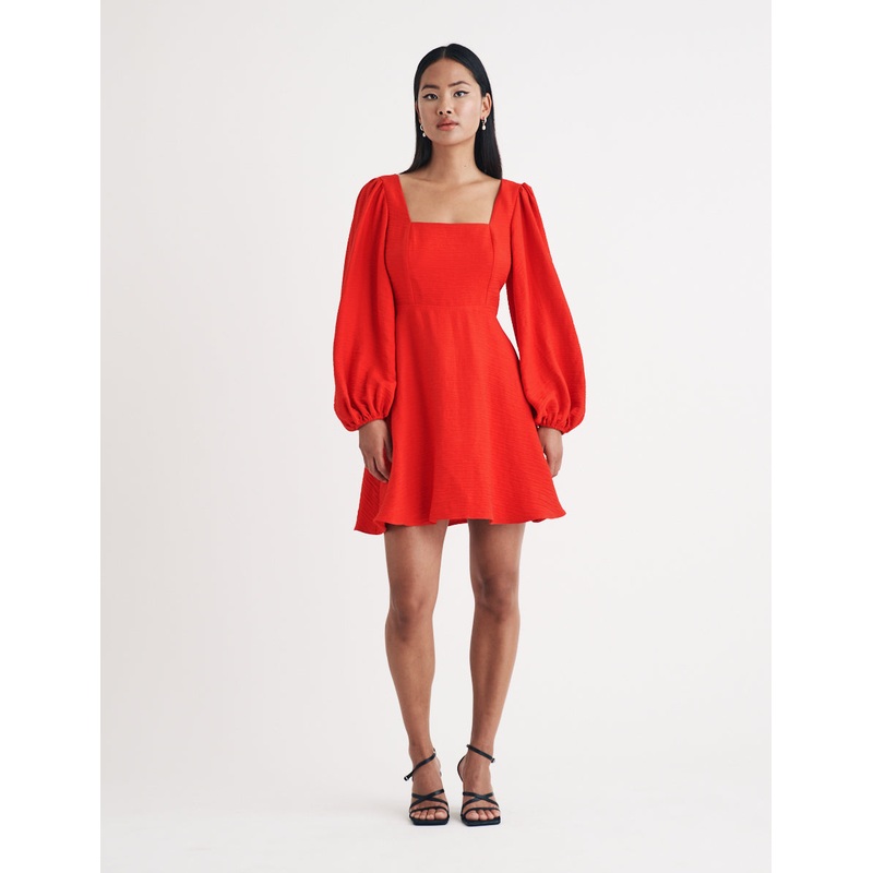 Add to guestlist. This statement red piece will get you party-ready in an instant. She nips in softly at the waist with voluminous sheer balloon sleeves and a swishy mini skirt for balance. Just add your favourite gold jewellery and youre good to go.