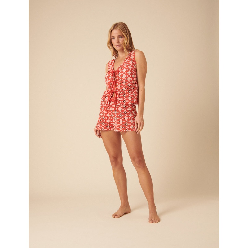 Made for sunshine. These pull-on broderie shorts come in red with an elasticated waist. Style yours with our matching waistcoat.