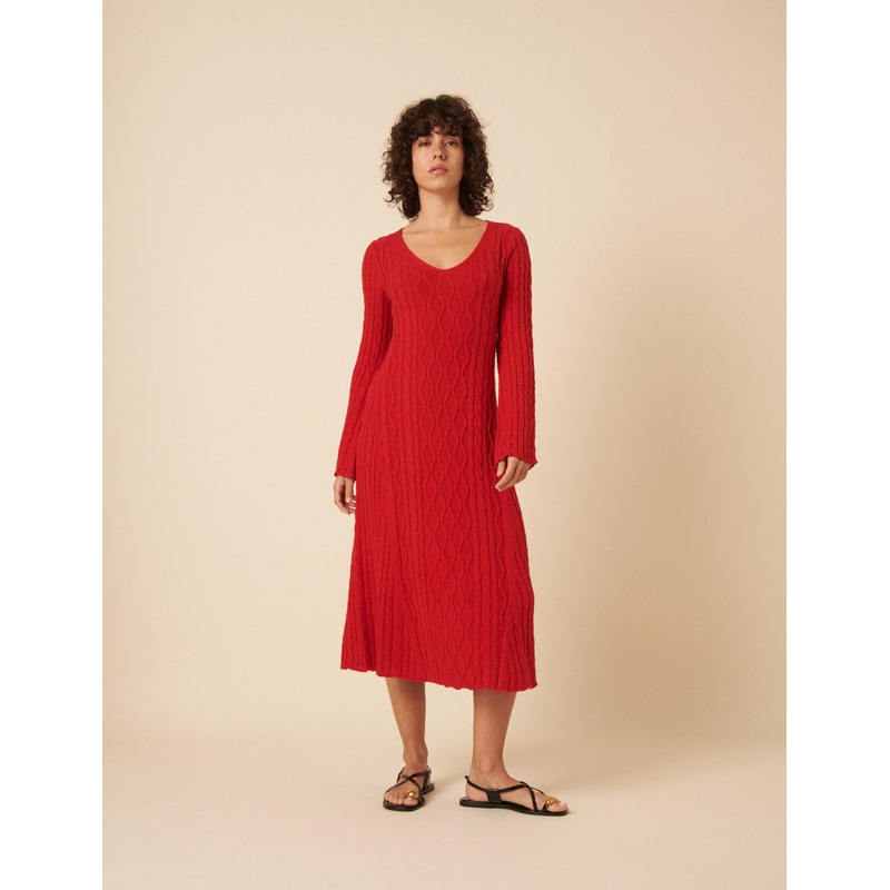 Red Cable Knit A-Line Knitted Dress