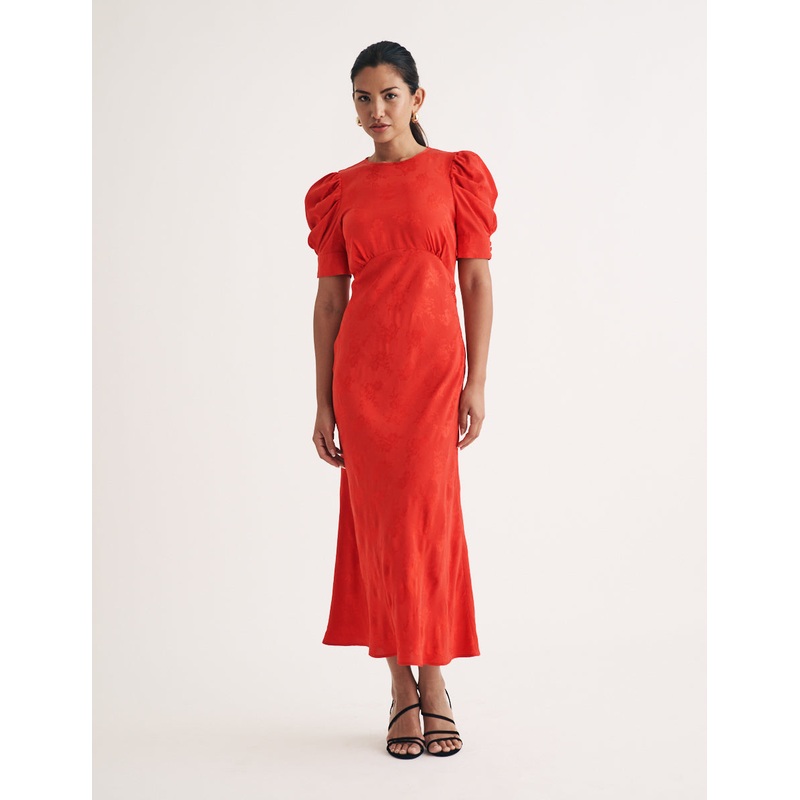 Say hello to the Moira midaxi dress. A slim fit with a nipped-in waist accentuates the silhouette before falling into a flowing skirt. Gathered details on the sleeves elevate the dress to must-have status. Pair with heels for your next event.