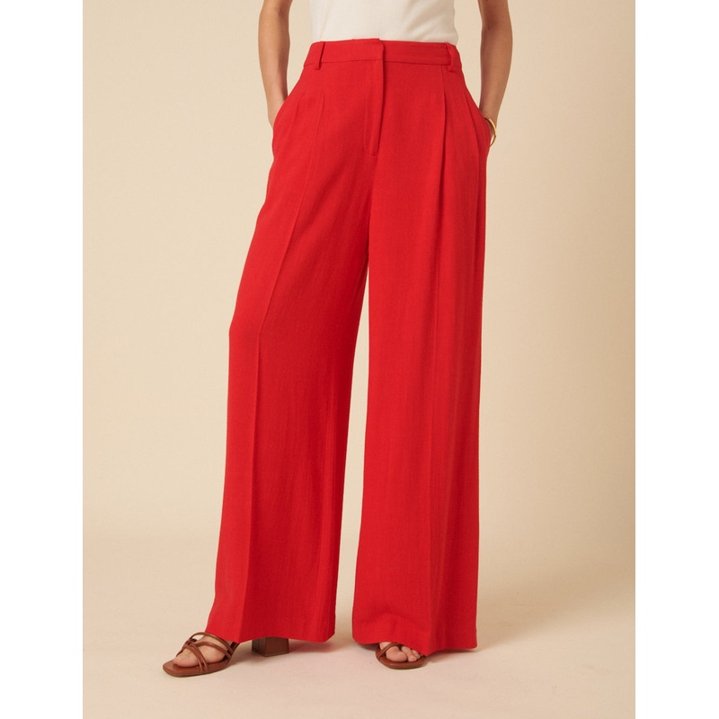 Coming in hot. Our red trousers are perfect for laid-back plans of all kinds and endlessly comfortable too. You have the relaxed fit to thank for that. Just add a white t-shirt. Front pleats Pockets Wide leg cut that skims the body
