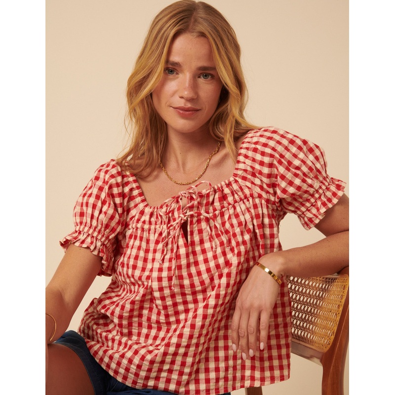 This ones bringing picnic energy. In red gingham with a square neckline and tie detail, our top has short puff sleeves and a breezy shape thats just so effortless.Square neckShort puff sleevesString tie detailSize tip: we recommend your usual size