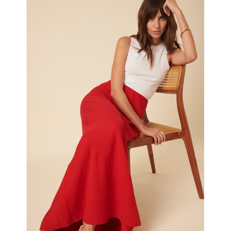 Red Linen-blend Mila Maxi Skirt