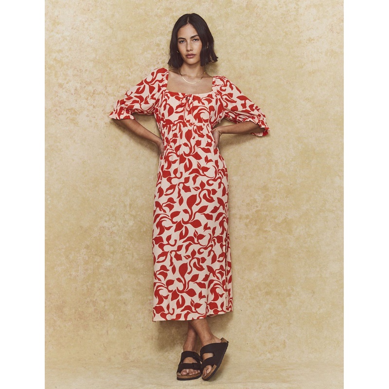 Say hello to Martina. A string tie detail finishes off the look. In terms of the fabric, its light and drapes like a dream. Style yours with chunky slides. Square neck Mid-length puff sleeves String tie detail Concealed zip fastening Relaxed skirt that ski