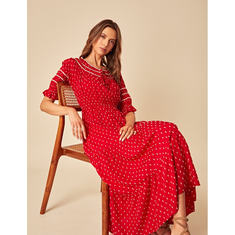 Red Printed Peyton Midi Dress