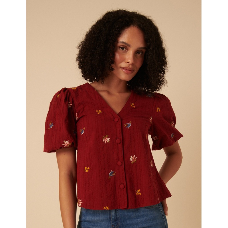 V-neck Short puff sleeves Button-detailing Size tip: we recommend your usual size