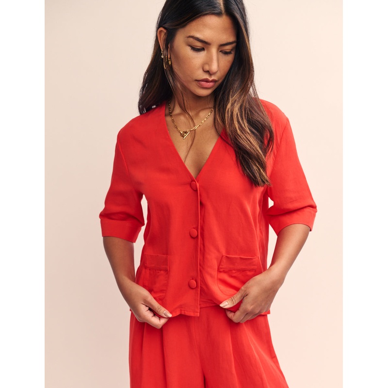 Our boxy Bobbie shirt needs to be put on rotation in your wardrobe. With a v-neckline and patch pockets, shes perfect for summer. This one comes in statement red. Mix and match her with everything else in the collection.V-neckShort sleevesButton frontBoxy