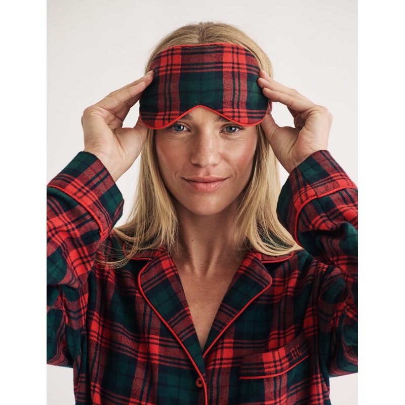 Heading to bed never looked so good. Coming in a classic red, we love its contrast piping and elasticated ruched band. Wear yours with loungewear of your favourite pyjamas, naturally.Eye maskRuched band