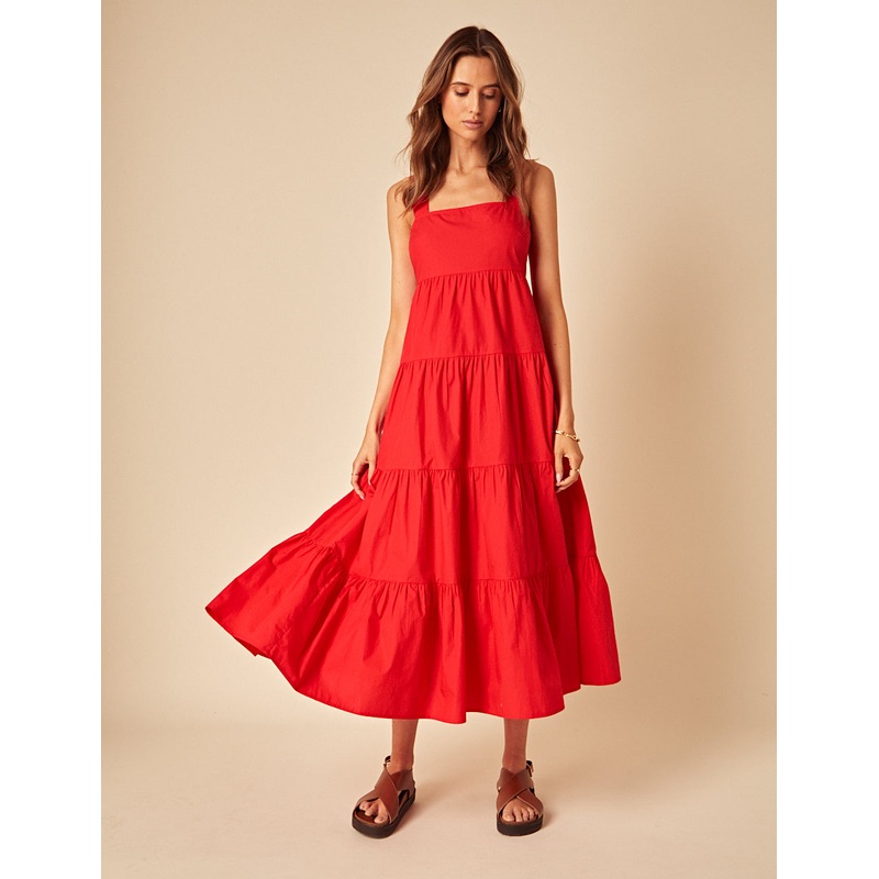 Red Tiered Cassia Midi Dress