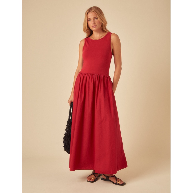 Minimal effort, maximum impact. Coming in a hot red shade, our Vera midi dress is an easy-wear statement style. Designed with a scoop neckline and thick straps, we love the voluminous skirt. Just add sandals and touches of gold.Crew neckSide pocketsDesigne