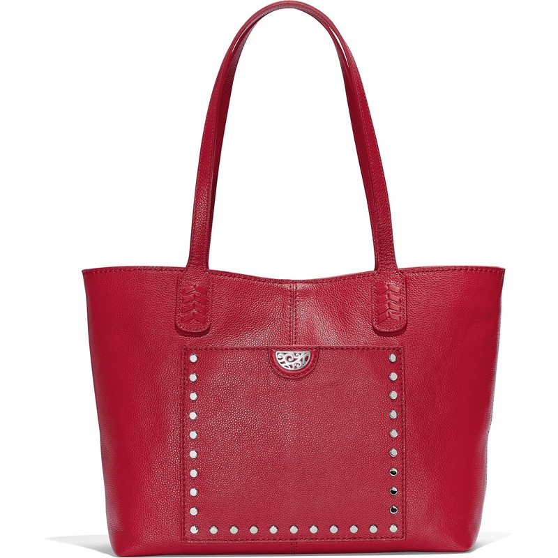 Modern and sleek, this studded tote packs a style punch. Change the shape of its silhouette by snapping the leather tabs inside. We love how roomy it is, along with its two outside pockets.